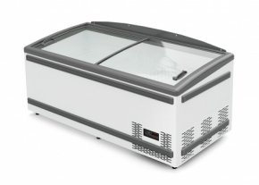 - Бонеты. Такие устройства представляют собой охлаждаемые «ванны» со стеклянными крышками, которые обеспечивают не только быстрый и легкий доступ к продукции, но и позволяют видеть содержимое бонет, не открывая их. Такие часто используют для торговли штучным мороженым, полуфабрикатами, замороженными овощами, сливочным маслом и другими продуктами.
